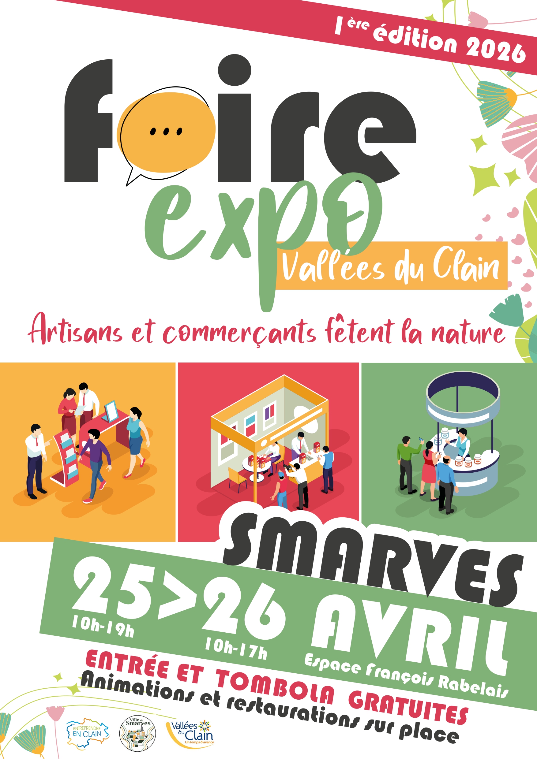 Nous avons le plaisir de vous annoncer l’organisation de la Foire-Exposition des Vallées du Clain qui se tiendra du 25 au 26 Avril 2026 à l'espace François Rabelais à Smarves. Cet événement est organisé par l'association Entreprendre en Clain et est dédié aux commerçants, artisans, entreprises locales et acteurs institutionnels. Il a pour ambition de mettre en lumière les savoir-faire du territoire et de renforcer les liens économiques et communautaires. »